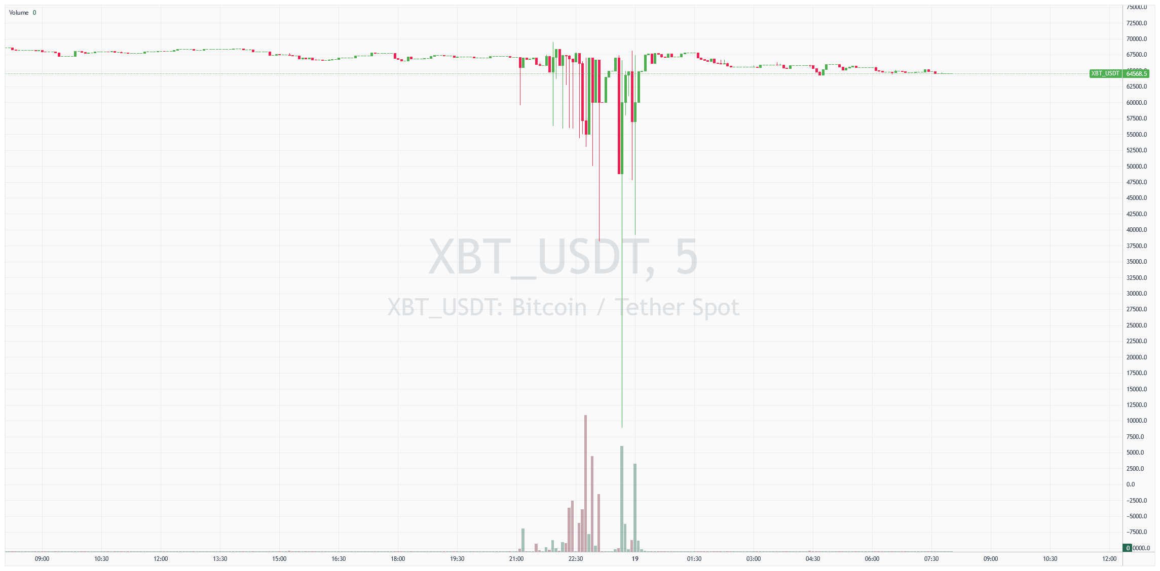 Sponsoredبدأ الانهيار في الساعة 22:40 بتوقيت UTC، ووصل سعر بيتكوين إلى 8900 دولار في غضون دقيقتين. وهو أدنى مستوى له منذ عام 2020، وفقًا لبيانات على منصة التداول BitMEX.