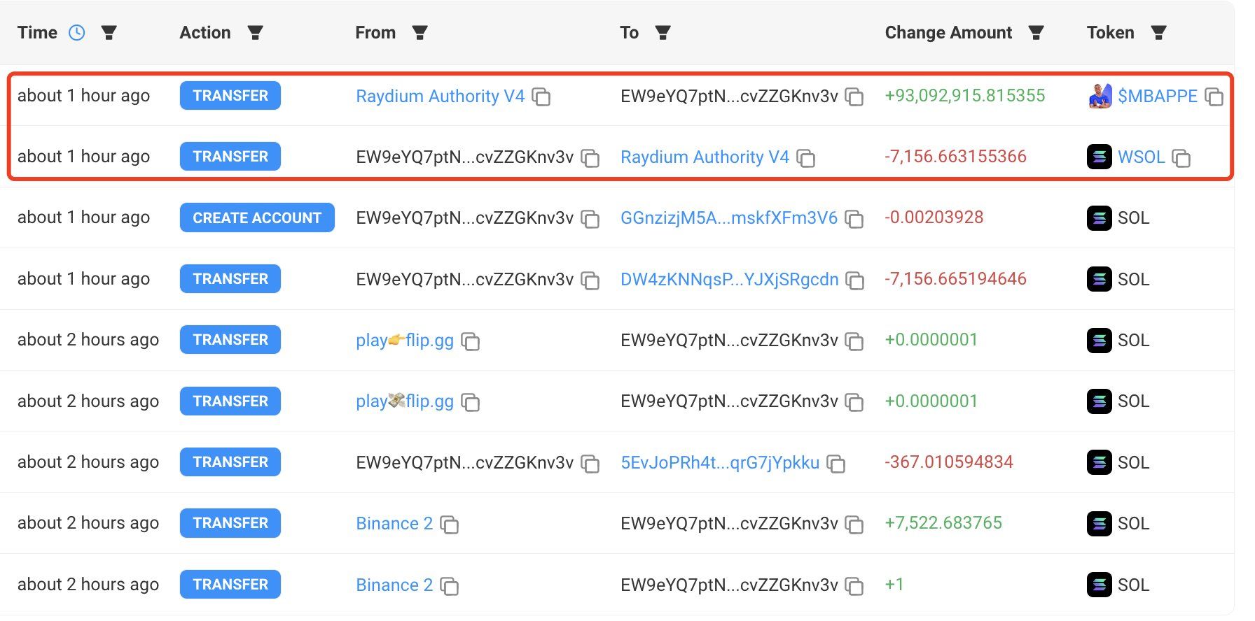 "أنشأ شخص ما محفظة جديدة وأنفق 7,156 SOL (1.03 مليون دولار) لشراء عملة ميم تسمى MBAPPE في معاملة واحدة، والتي لا تبلغ قيمتها الآن سوى 9,200 دولار. خسر هذا الشخص أكثر من مليون دولار في غضون ساعة واحدة فقط"