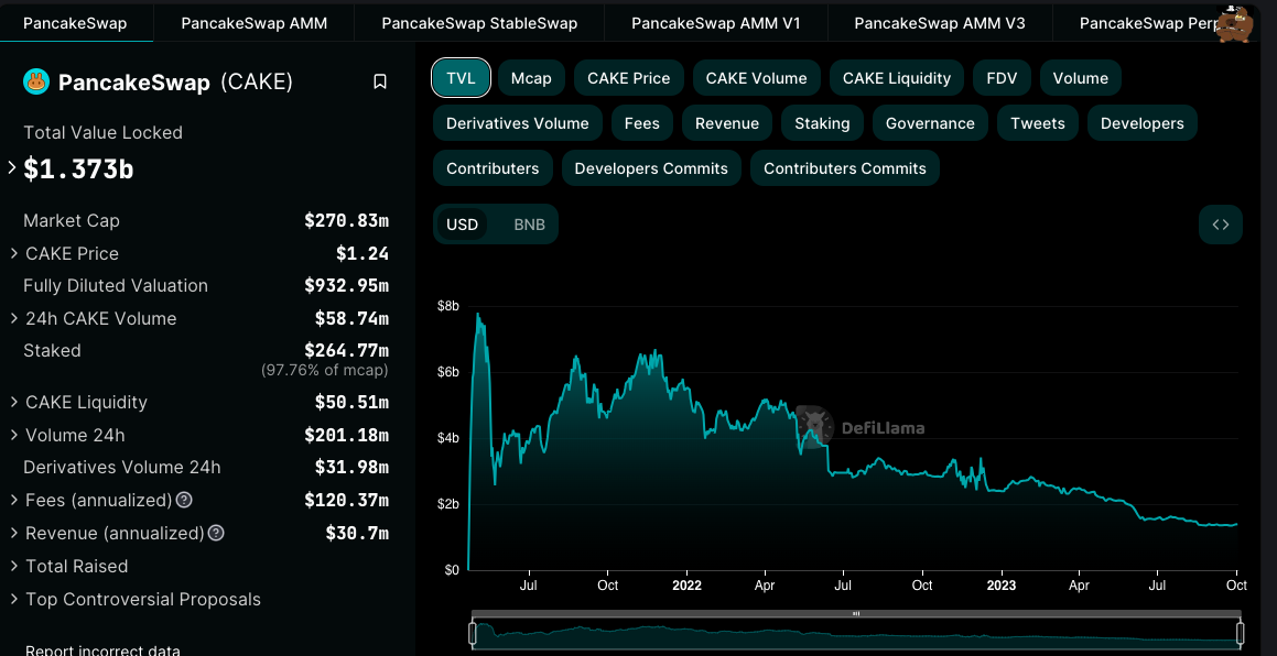 لذلك، يمكن لرمز CAKE، الركز الأصلي لبورصة Pancake swap، أن يوضح وحده الخسارة المذهلة التي تعرضت لها البورصة. إذا تعرض الأصل لضربة السوق الهابطة مثل الأصول الأخرى في عام 2022. لكنه لم يتعاف بعد.