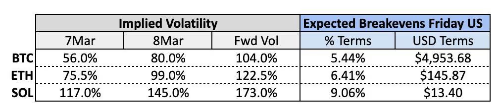 وامتدت هذه الاتجاهات إلى خيارات الإيثريوم وسولانا، حيث تسعّر الأسواق احتمالية تحركات سعرية كبيرة بعد القمة.