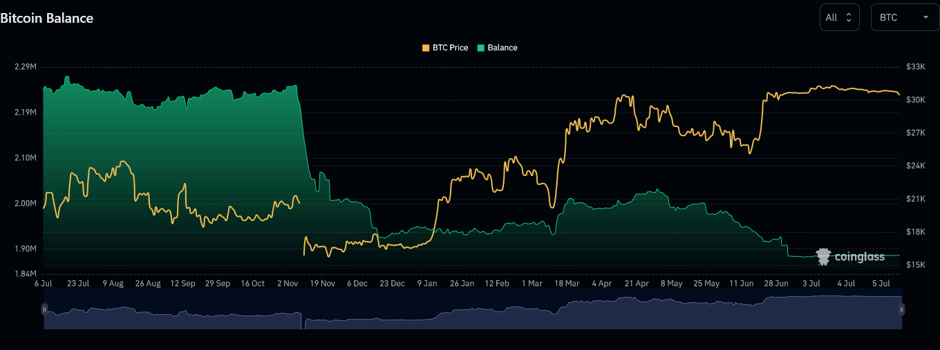 ذكر التقرير أن أحجام البيتكوين، أكبر عملة رقمية من حيث القيمة السوقية في محافظ البورصات، انخفض بنسبة 4%. ليبلغ مستوى قريب من الأحجام في ديسمبر 2022. وهو بحد ذاته أدنى مستوى منذ نوفمبر 2020. قبل بدء سوق الثيران الصاعد في عام 2021. كما شهدت أحجام عملة إيثيريوم انخفاض بنسبة 5.8% إلى مستويات لم تبلغها منذ مايو 2018.