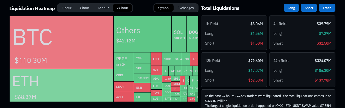 تشير بيانات Coinglass إلى أن هذا الحدث هو أكبر عملية تصفية لصفقات الشراء الطويلة منذ 5 مارس. في ذلك الوقت، انخفض بيتكوين إلى 60800 دولار بعد ارتفاعه إلى أعلى مستوى له على الإطلاق آنذاك عند حوالي 69000 دولار.