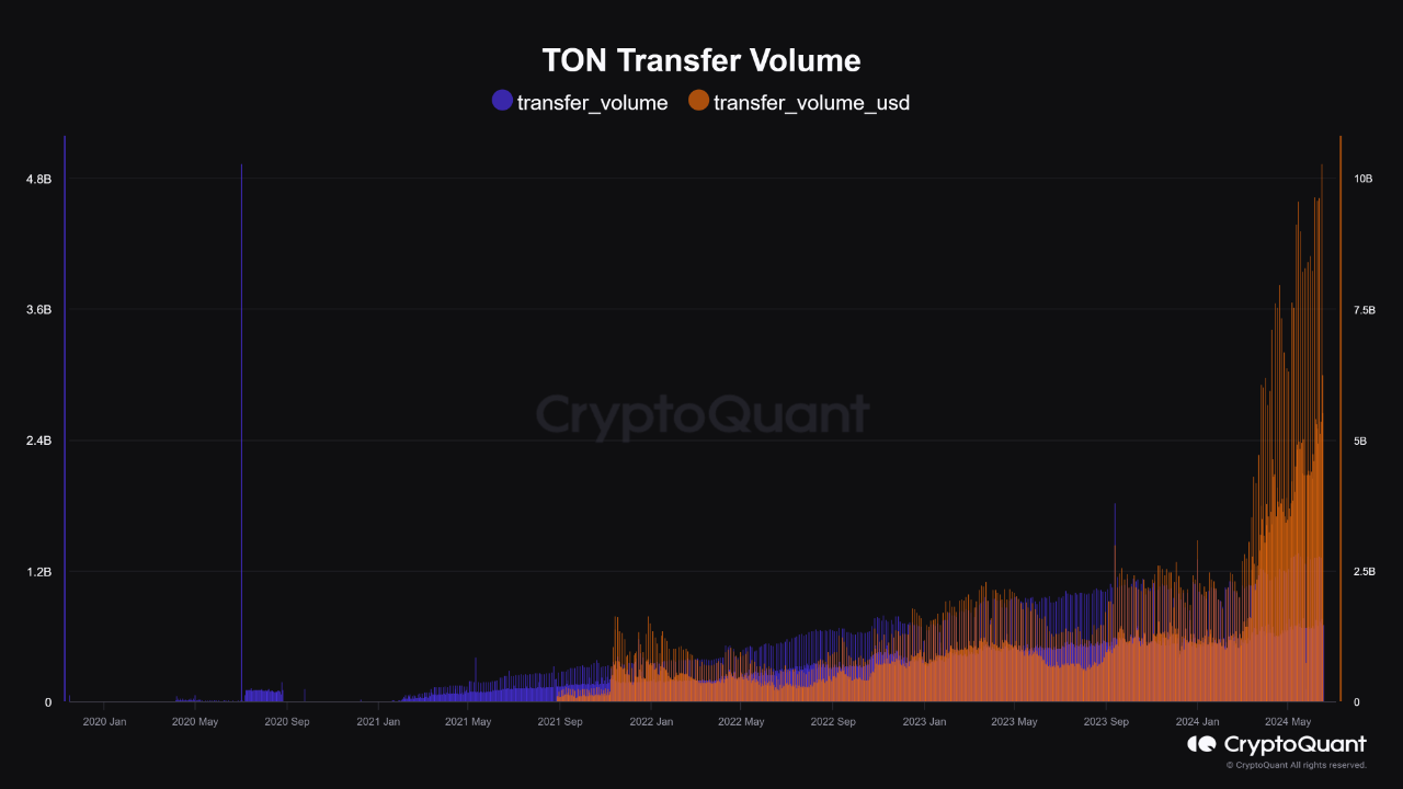 ومع ذلك، قد تستسلم البورصة تحت ضغط الطلب المتزايد على TON. أبرز مدير مجتمع CryptoQuant والمحلل مارتن شبكة The Open Network كواحدة من أشهر البلوكتشينات. وأشار إلى مختلف المقاييس السلسلية التي تشهد ارتفاعًا، مما يدل على النمو المستمر للشبكة.