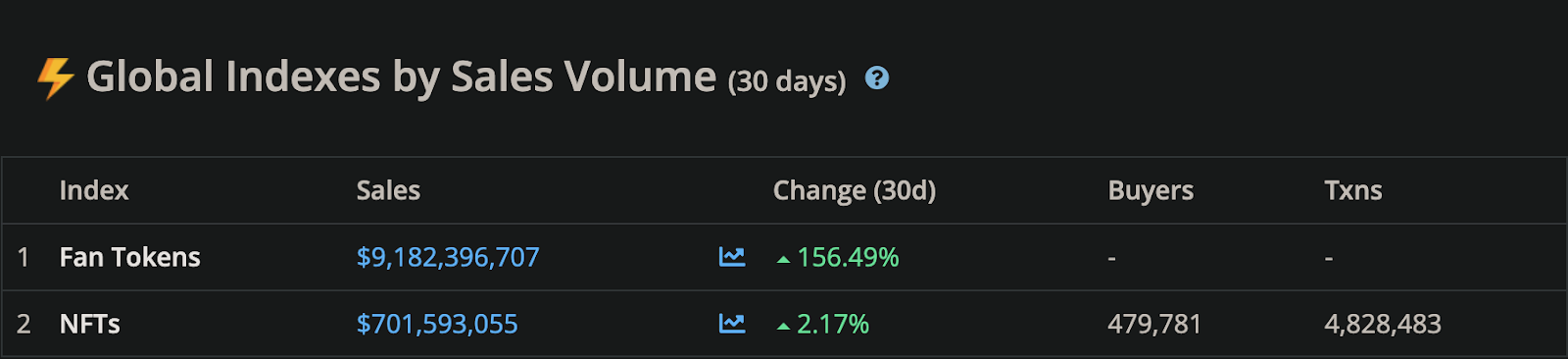 وعلى الجانب الآخر، فإن المتحمسين لصناعة العملات المشفرة يصنعون الفرق حيث ارتفاع المبيعات المالية العالمية لرموز المشجعين خلال هذا الصيف في ظل الانخفاض الذي تشهده صناعة الرموز غير القابلة للاستبدال التي تحاول في الفترة الأخيرة السيطرة على وضعها في السوق.