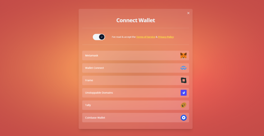 تعد محفظة ميتاماسك الأفضل لمعظم المستخدمين كما يمكن استخدام وولت كونكت أو فريم أو أنستوببول دومينز أو تالي.