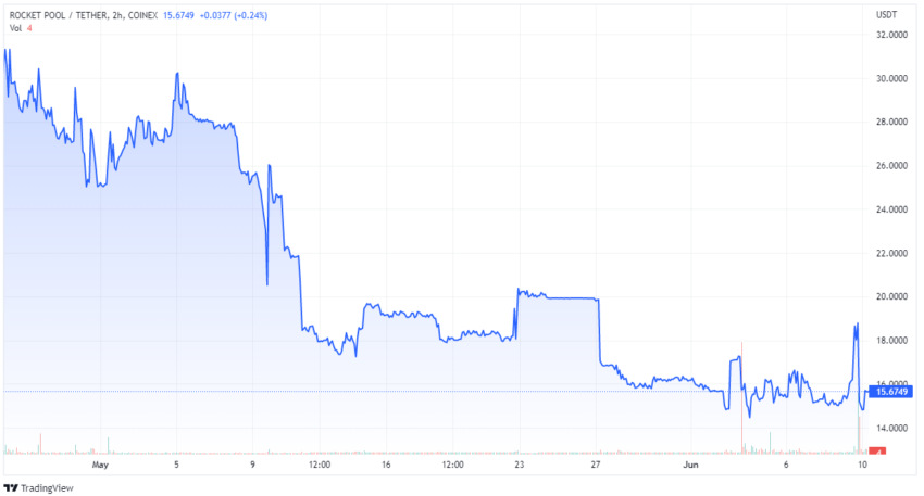 تطور الرمز مرتبط بجميع بجوانب بعملية تحصيص إيثيريوم على شبكة روكت بول حيث أن ارتفاع سعر الرمز يتناسب مع زيادة شعبية الشبكة كخدمة تحصيص.