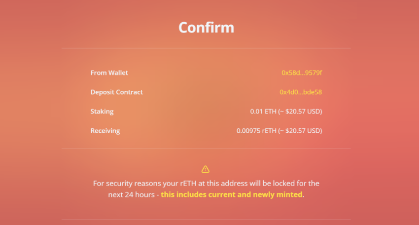 يمكن للمستخدمين مشاركة إيثيريوم للحصول على مكافآت وتخصيص ٠.٠١ إيثيريوم على الأقل كي يحصلوا على RETH ويكافئ هذا الرمز المميز مع الوقت كما يعد مناسب للتداول والإقراض واستخدام الضمانات.