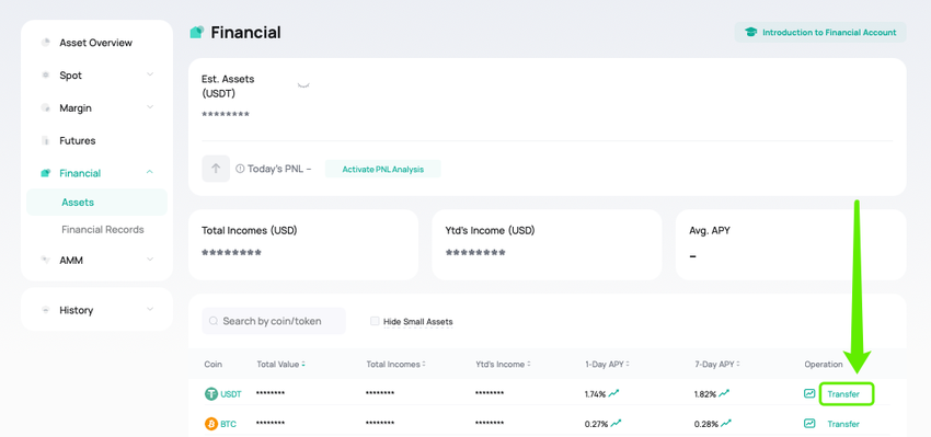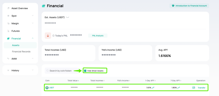في حين أن USDT يُعد مثالًا شائعًا، فإن الحساب المالي من CoinEx يدعم مجموعة واسعة من العملات الرقمية، حيث يوفر بعضها عوائد سنوية مئوية (APY) أعلى. يمكن للمستخدمين استكشاف الأصول المختلفة لتعظيم عوائدهم بناءً على تفضيلاتهم للمخاطر وظروف السوق. من المستحسن دائمًا مقارنة العوائد السنوية المئوية (APY) عبر الرموز المتاحة لتحقيق أقصى استفادة من الأصول الخاملة.