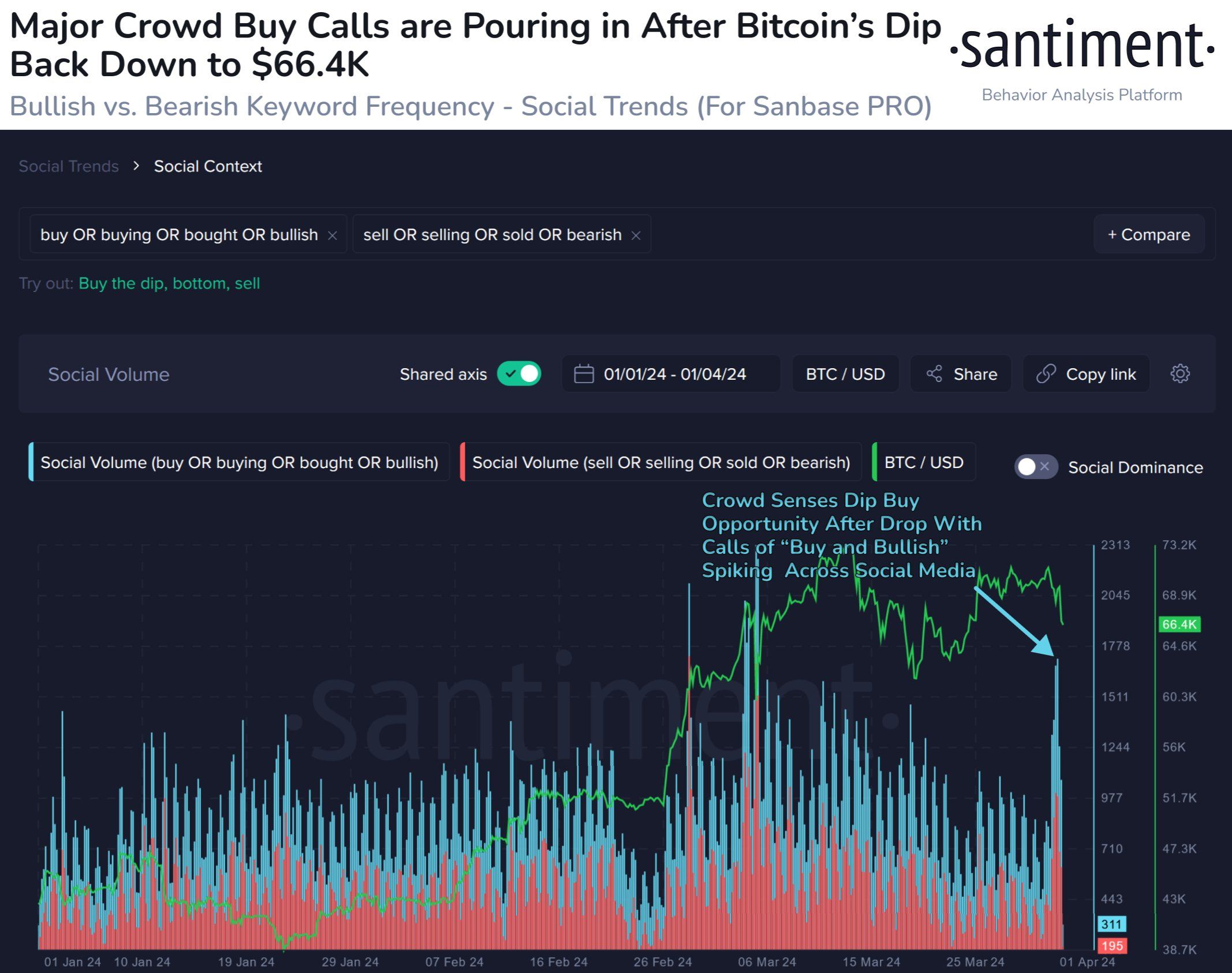 حللت "سانتيمنت" المحادثات على منصات التواصل الاجتماعي، لتكشف عن انتشار ملحوظ للمصطلحات المرتبطة بالشراء والصعود، مثل #buy، #buying، #bought، و #bullish، مقارنةً بالمصطلحات السلبية مثل #sell، #selling، #sold، أو #bearish.