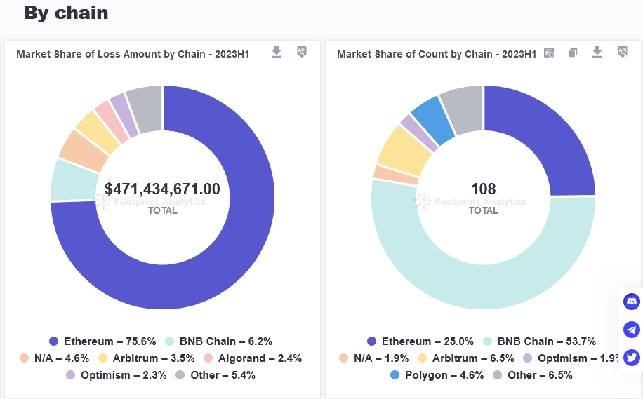 نظرًا للعدد الكبير من مشاريع الويب 3 على شبكة ايثيريوم، فقد كانت تكنولوجيا سلسلة الكتل هذه دائما هي الهدف الرئيسي لعمليات الاحتيال والاختراقات في مجال العملات الرقمية المشفرة. للأسف، استمر هذا الاتجاه في النصف الأول من عام 2023.