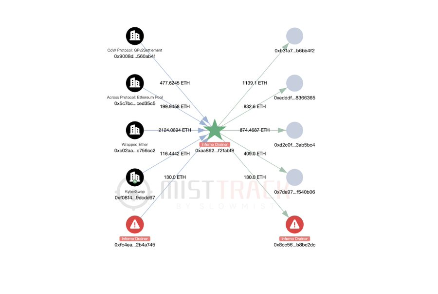 ومع ذلك، يبدو الخروج أكثر حسمًا هذه المرة. أفادت Scam Sniffer أن فريق إنفيرنو قد نقل بالفعل 2 845 ETH (حوالي 7,5 مليون دولار) من عنوان تحصيل الرسوم إلى محافظ أخرى. بالإضافة إلى ذلك، تم تحديث عنوان الرسوم للمصرف على السلسلة، مما يشير إلى تسليم كامل للسيطرة إلى طرف آخر.