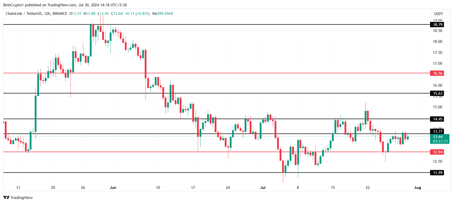 يواجه سعر تشينلينك (LINK) تحديات في اختراق المقاومة النفسية الحاسمة عند 15 دولارًا.