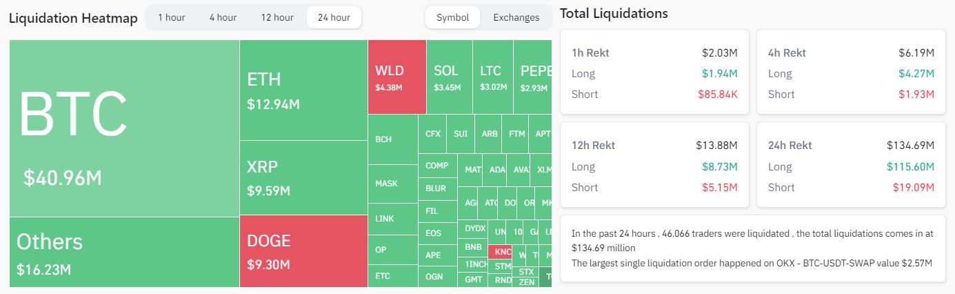 وتم أيضًا تصفية المضاربين لعملة WLD التي تم إطلاقها حديثًا حيث تم إغراق العملة بأكثر من 40% بعد أقل من يوم واحد من إصدارها.
