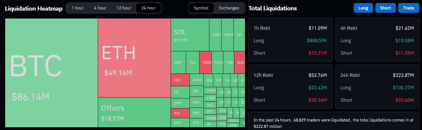 Sponsored Sponsoredبعد هذه الأحداث، شهد السوق تصاعد كبير في خسائر المستثمرين، حيث تم تصفية أكثر من 222 مليون دولار من عقود المشتقات للعملات الرقمية حسب بيانات منصة CoinGlass.