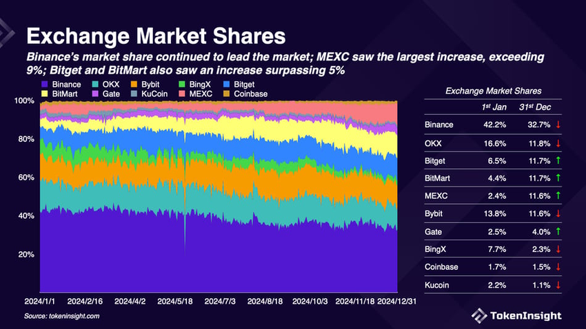 وأشار التقرير إلى أن حصة سوق MEXC نمت بنسبة 9.2 نقطة مئوية، لتصل إلى 11.6% بحلول نهاية عام 2024، مقارنة بـ 2.4% في عام 2023.