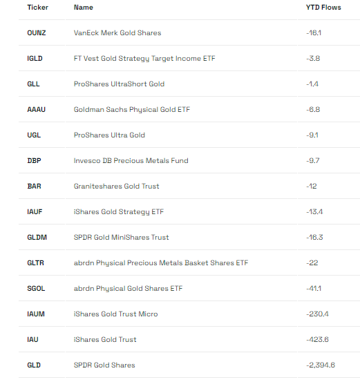ويتجلى هذا التحول في التدفقات الكبيرة الخارجة من صناديق الاستثمار المتداولة في الذهب، وهو الاتجاه الذي يتناقض بشكل صارخ مع التدفقات الداخلة في العام السابق.