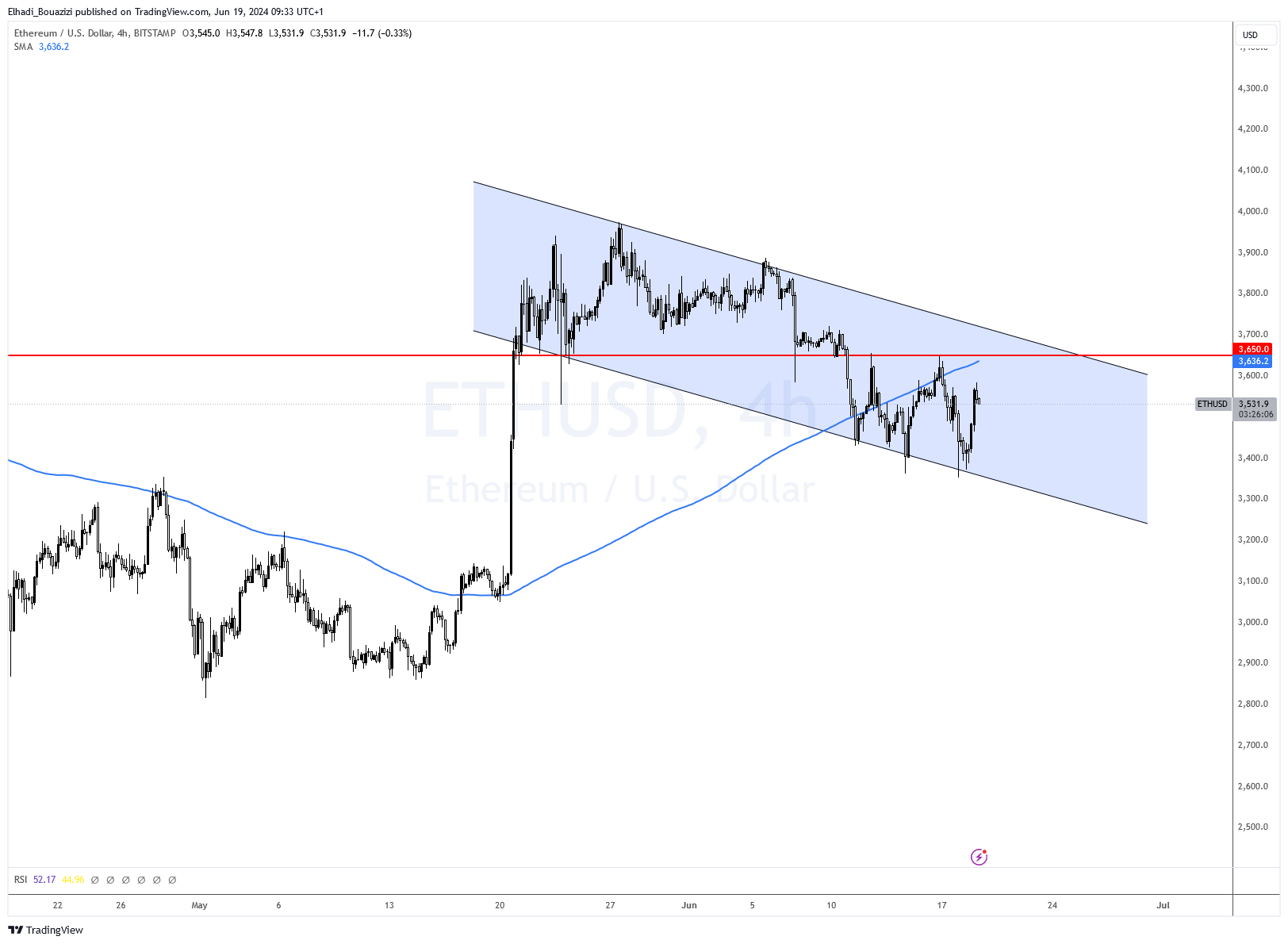 فنيا، رغم هذا الارتفاع إلا أن سعر إيثيريوم ETH لم يتمكن من اختراق أي مستويات فنية قوية خاصة منطقة المقاومة حول 3650 دولار. التي كان يتداول حولها منذ الموفقة المبدئية على صناديق ETF إيثيريوم.