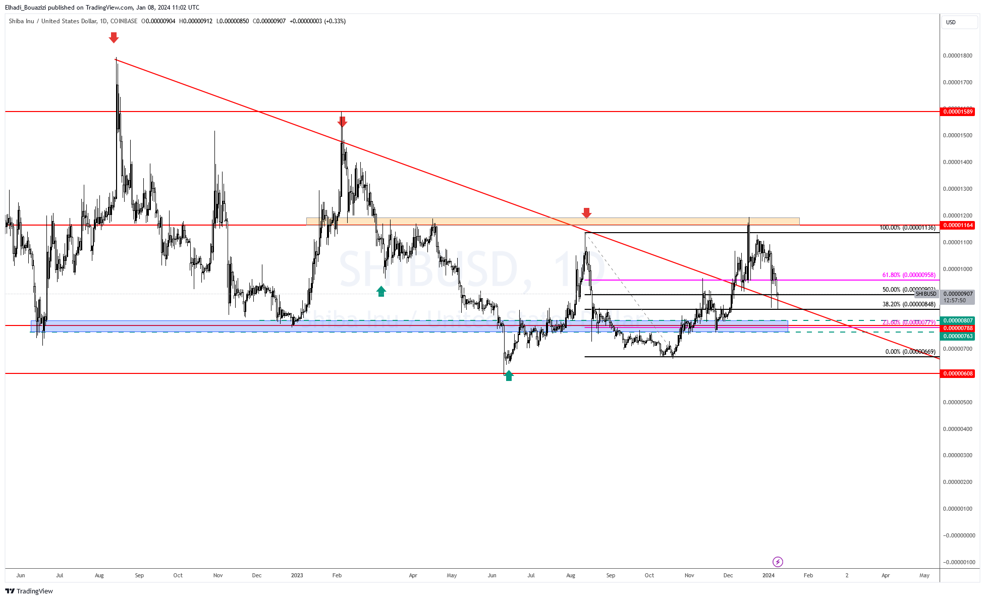 عملة الميم هذه ربما لديها بعض الأمل أكثر من منافستها السابقة. لأن لديها مشروع شيباريوم الذي يسعى لترقيتها في مشروع جاد. رغم أنه واجه العديد من التعثرات، التي يمكننا رؤيتها في أداء سعر SHIB الذي كان يتحرك في خط اتجاه هابط منذ عام 2022.