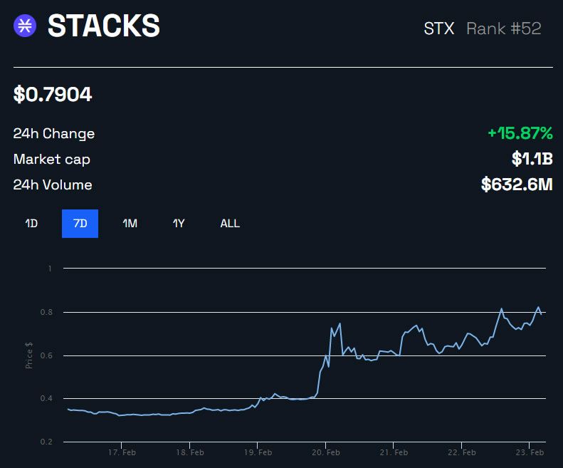 وعلى الجانب الآخر، فقد ارتفعت عملة المنصة STX، لتحقق أرباح مذهلة.