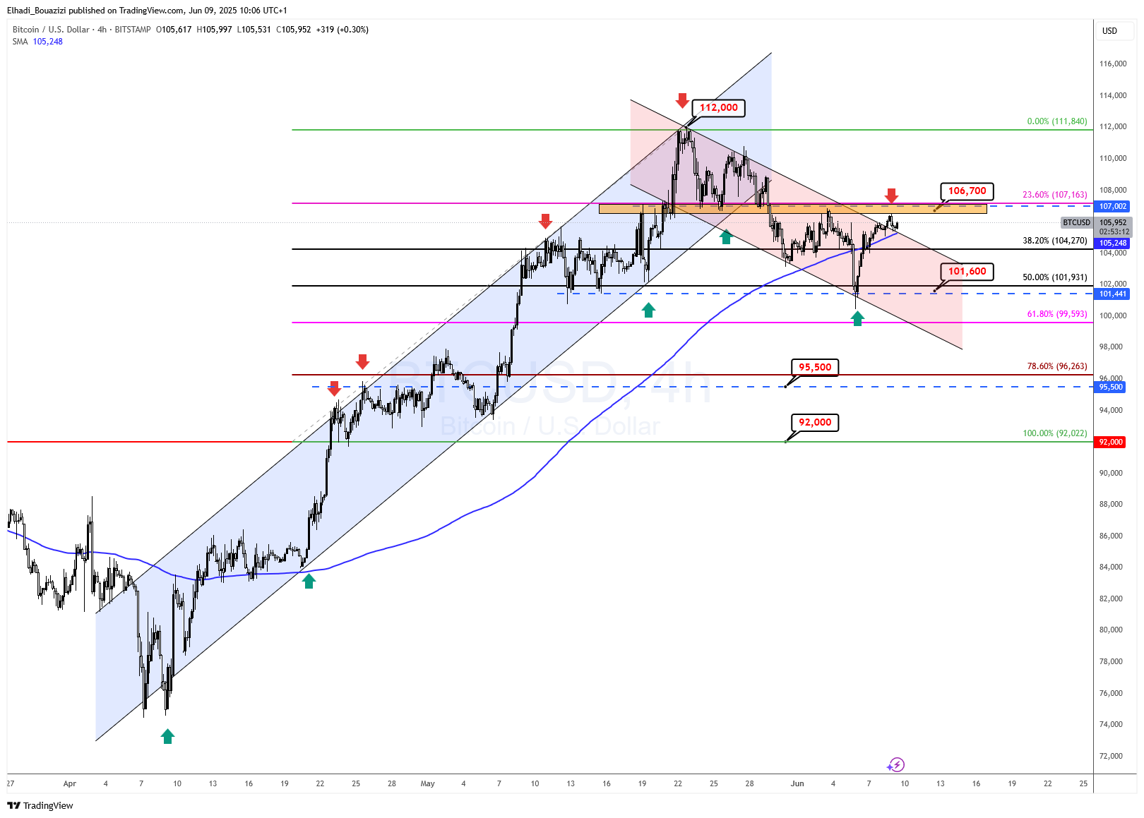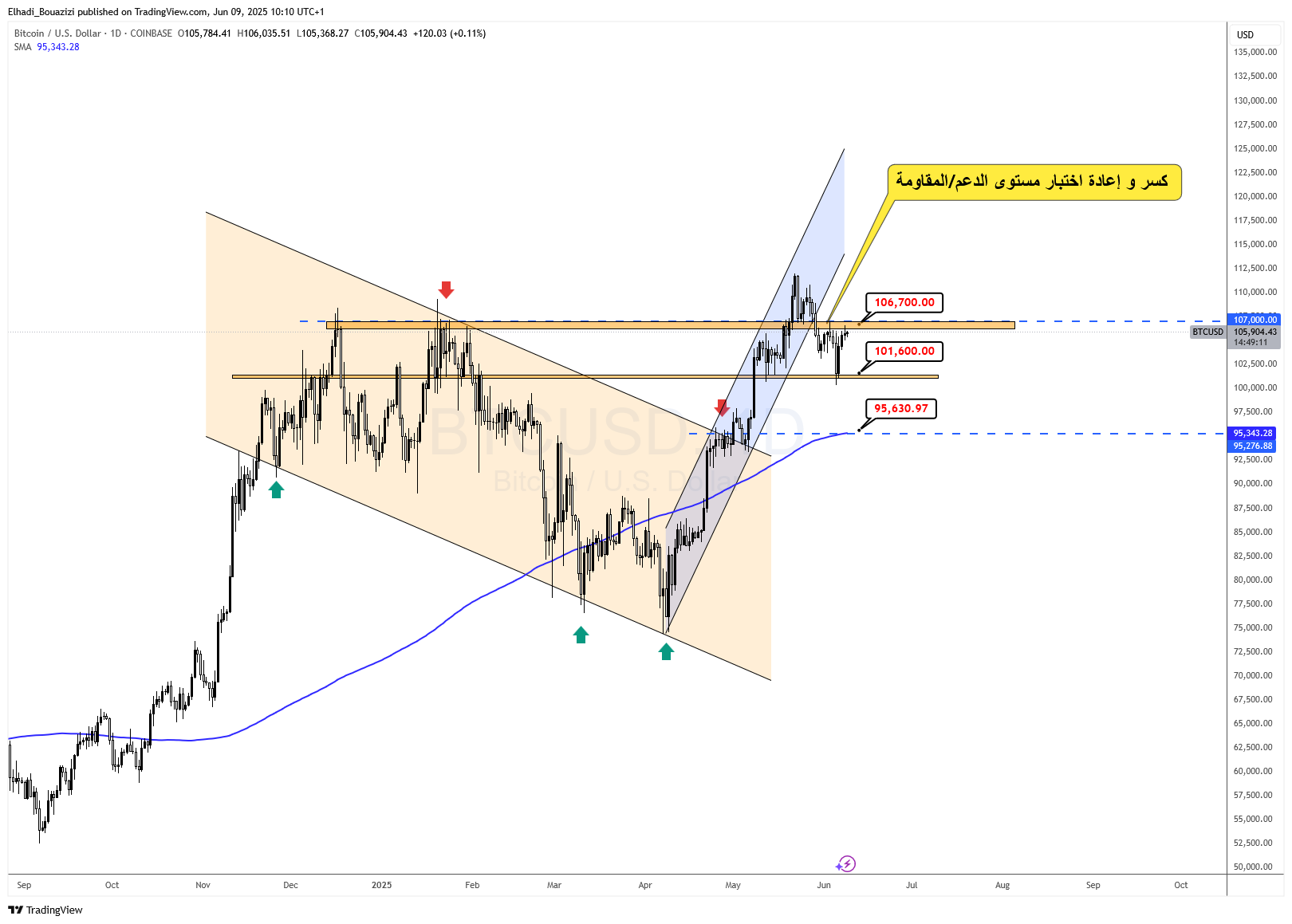 106700 – 107000 دولار: منطقة مقاومة حرجة لم يتم اختراقها بعد.