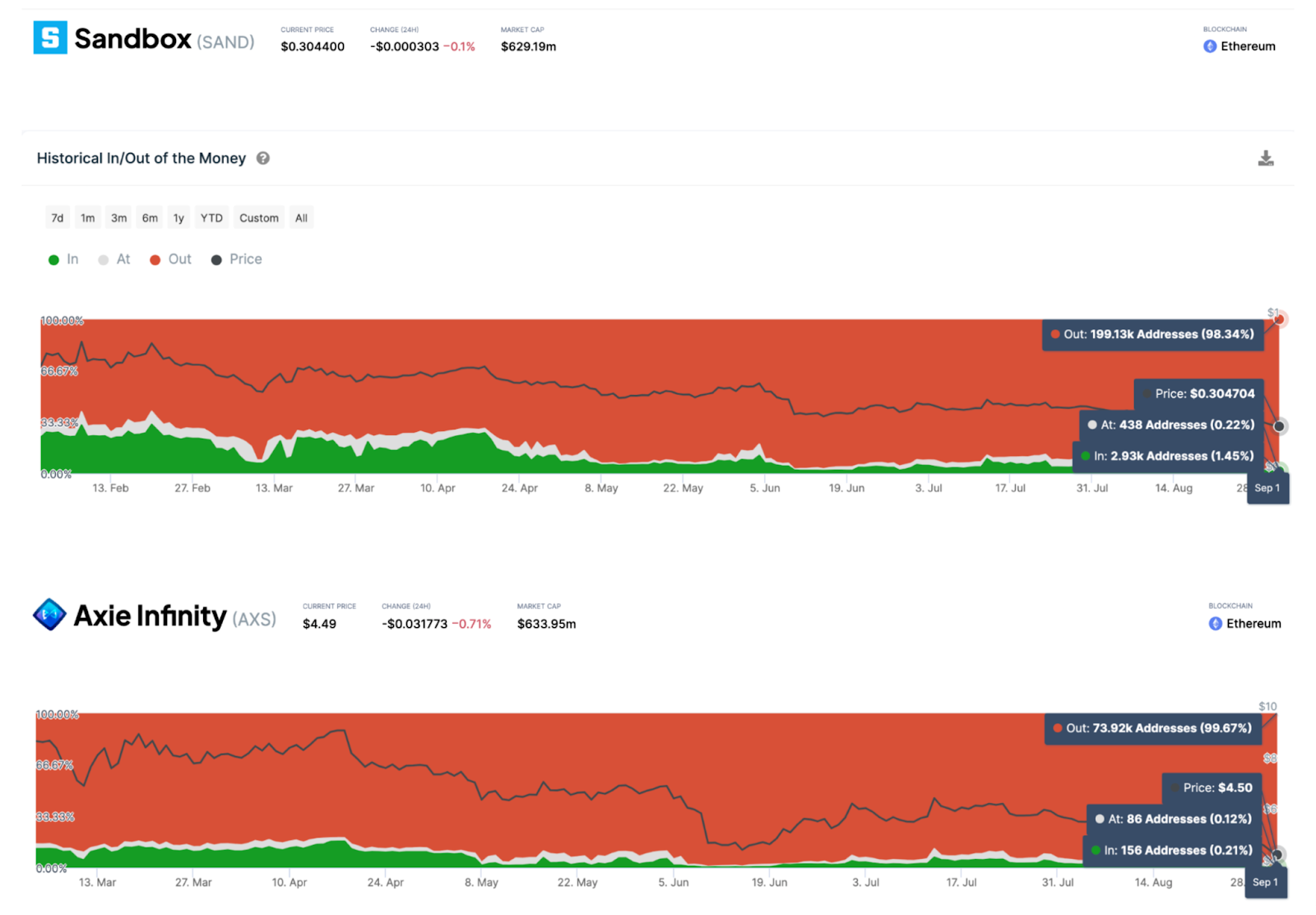 كما تُظهر بيانات IOMAP التاريخية المعروضة أدناه أن الغالبية العظمى من مالكي ENJ وMANA وAXS وSAND الحاليين داخل المنطقة الحمراء.
