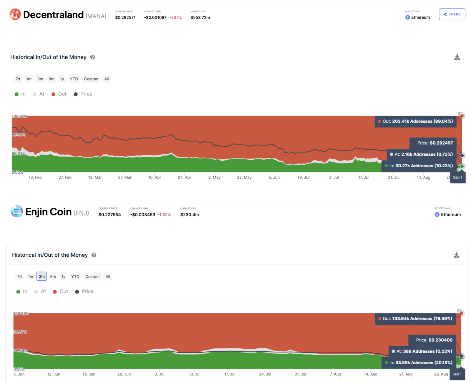 وفي نفس السياق،، فإن مستثمري Decentraland وEnjin Coin بعيدون أيضًا عن تحقيق الربح.