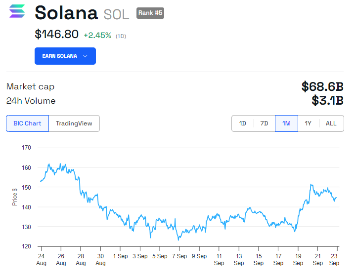 تعكس هذه التطورات التزام شبكة سولانا بالنمو وجاذبيتها بين لاعبي التمويل التقليدي (TradFi). على الرغم من ذلك، فإن SOL، الرمز المميز لتشغيل بلوكتشين سولانا، لا يعكس التفاؤل. كما ارتفع سعر سولانا بنسبة 2,45% في آخر 24 ساعة، ليصل إلى 146,80 دولار في وقت كتابة هذا التقرير.
