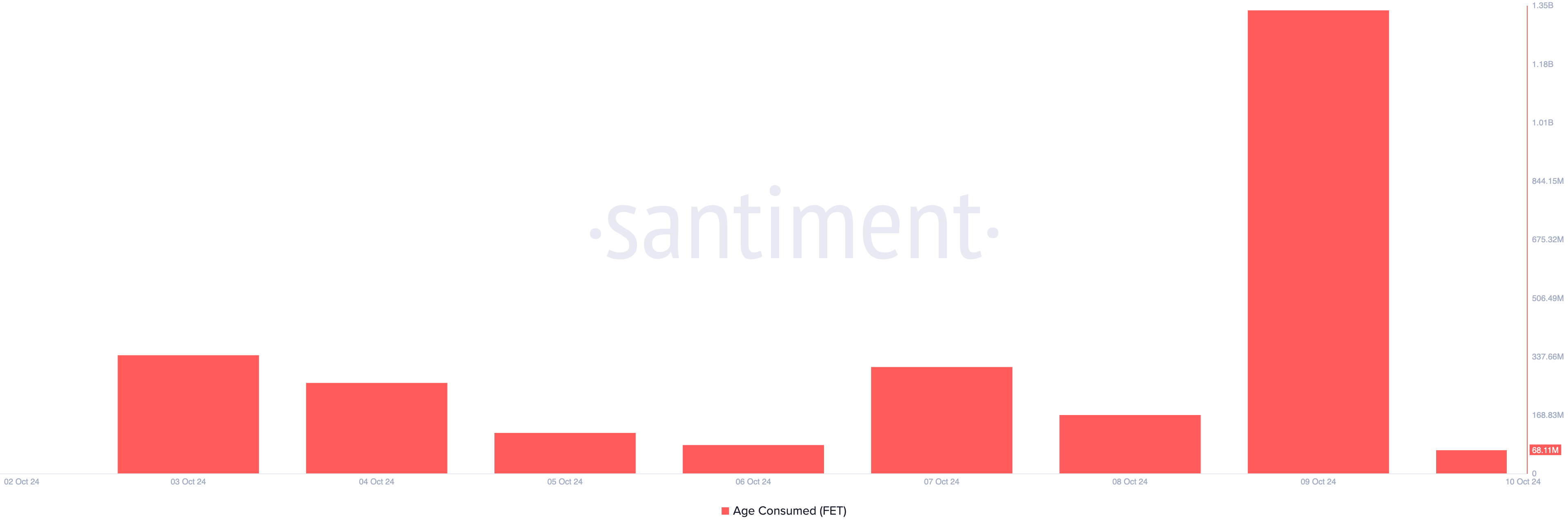 خلال جلسة التداول اليومية يوم الأربعاء، سجلت FET زيادة كبيرة في عمرها المستهلك. المقياس، الذي يتتبع حركة العملات المحتفظ بها لفترات طويلة، ارتفع بأكثر من 600% في يوم واحد، ووصل إلى 1,33 مليار — وهو الأعلى منذ 13 سبتمبر.
