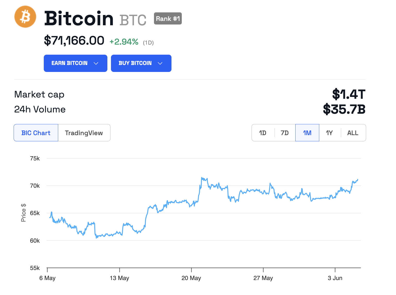 ارتفاع البيتكوين إلى 71,200 دولار