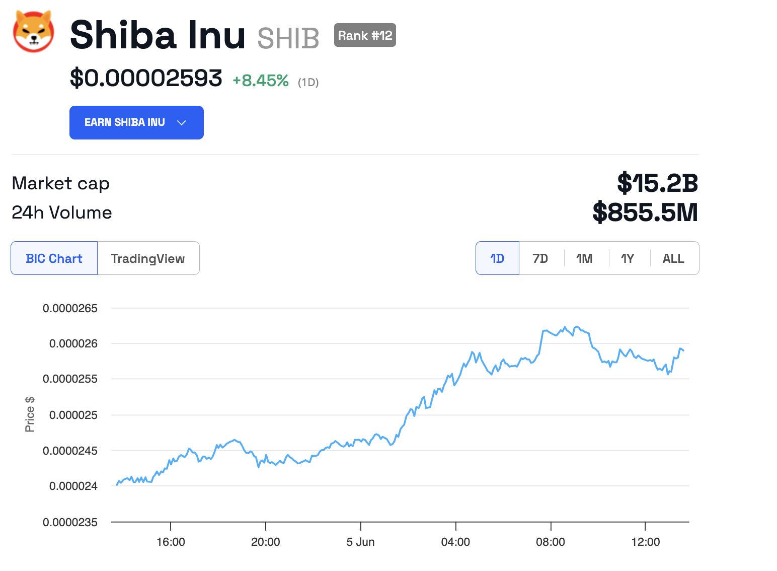 ومع ذلك، شهد سعر شيبا إينو زيادة بنسبة 8.45٪ خلال ال 24 ساعة الماضية.