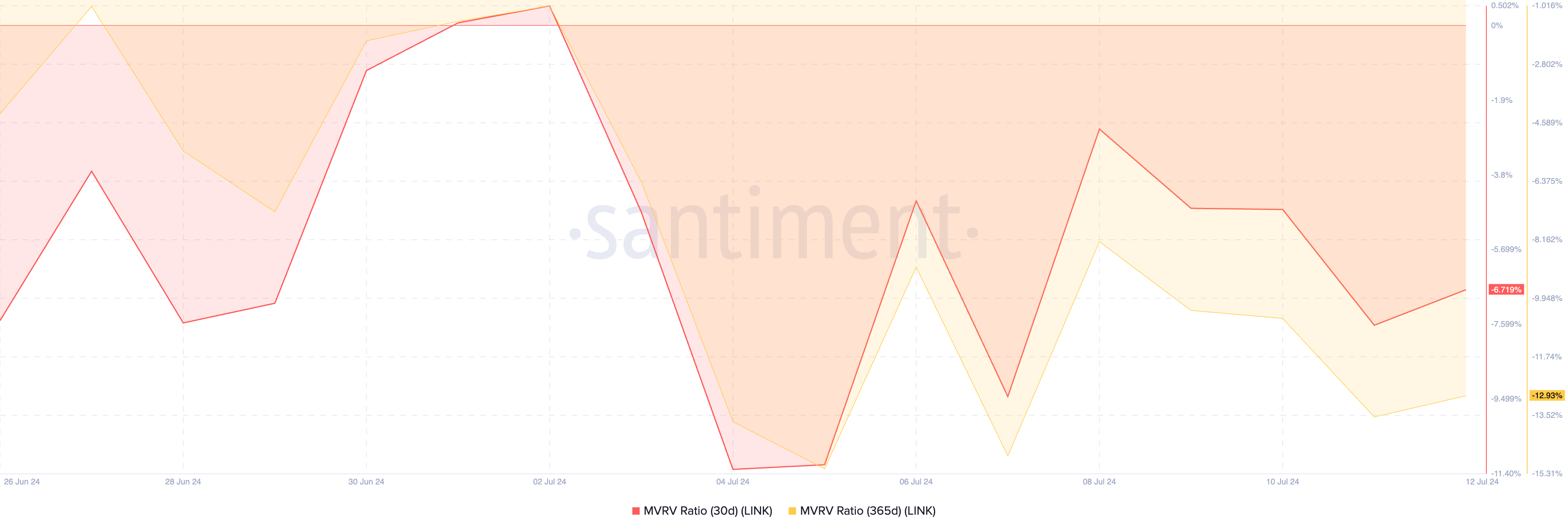 تؤكد قراءات نسبة القيمة السوقية إلى القيمة المحققة (MVRV) للينك أن العملة البديلة مقومة حاليًا بأقل من قيمتها، مما يقدم فرصة للشراء.