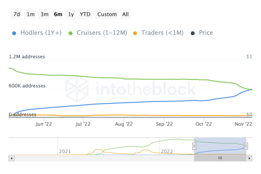 واتسم مجتمع التشفير الخاص بالعملة بمشاعر إيجابية ولكن السعر لم يتحرك كثيراً حيث وصلت الأحجام الخاصة بالعملة بعد تحرك السعر إلى مستويات أقل من السابق.
