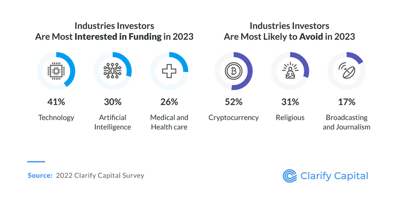 ووفقًا للدراسة، يفضل المستثمرون الاستثمار في الشركات المربحة بنسبة 44%. والتي تتيح عائدًا على الاستثمار عاليًا بنفس النسبة. بالإضافة إلى وجود قيادة قوية بنسبة 28%. وفي الوقت نفسه، يعتبرون أي اقتراح يبدو "جيدًا  للغاية ليكون صحيحًا جدًا" علامة حمراء رئيسية.