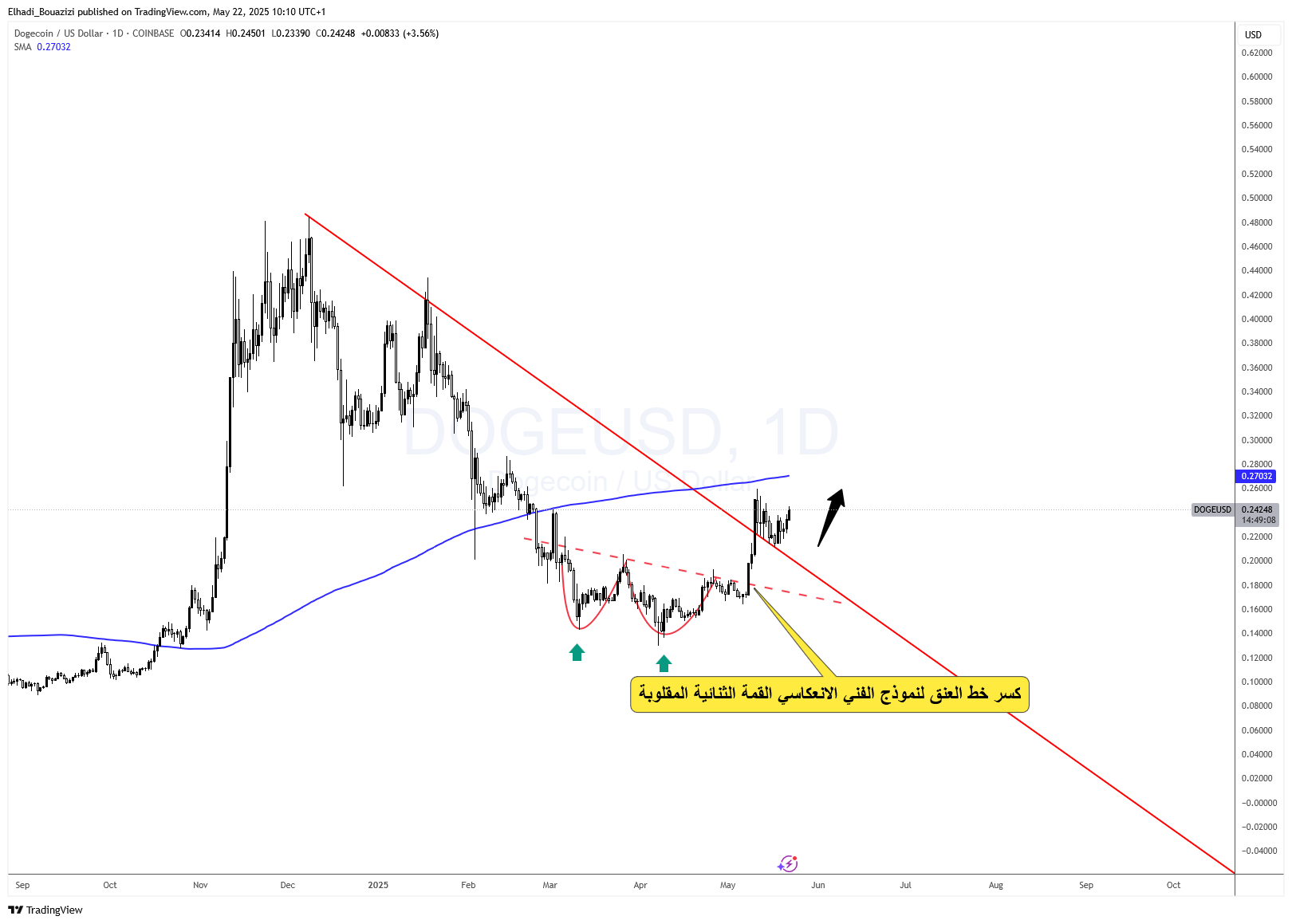 اكتمال نموذج القمة الثنائية المقلوبة… إشارة أولى للانعكاس سعر دوجكوين
