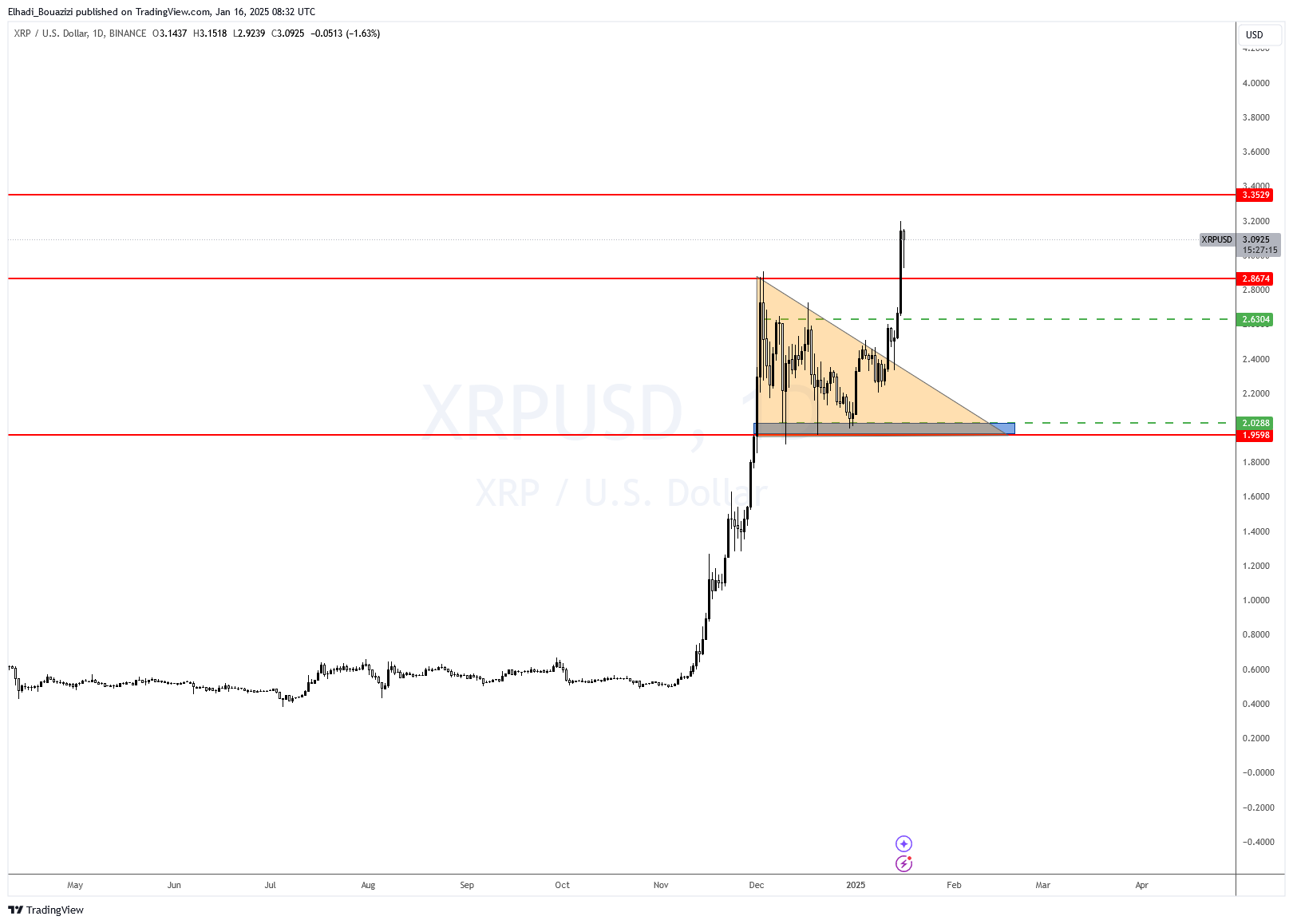 قفز سعر XRP بنسبة 50% ليصل إلى أعلى مستوياته منذ سبع سنوات متجاوزًا 3 دولارات خلال هذا الشهر، ليواصل بذلك مكاسب فصلية بلغت 240% .