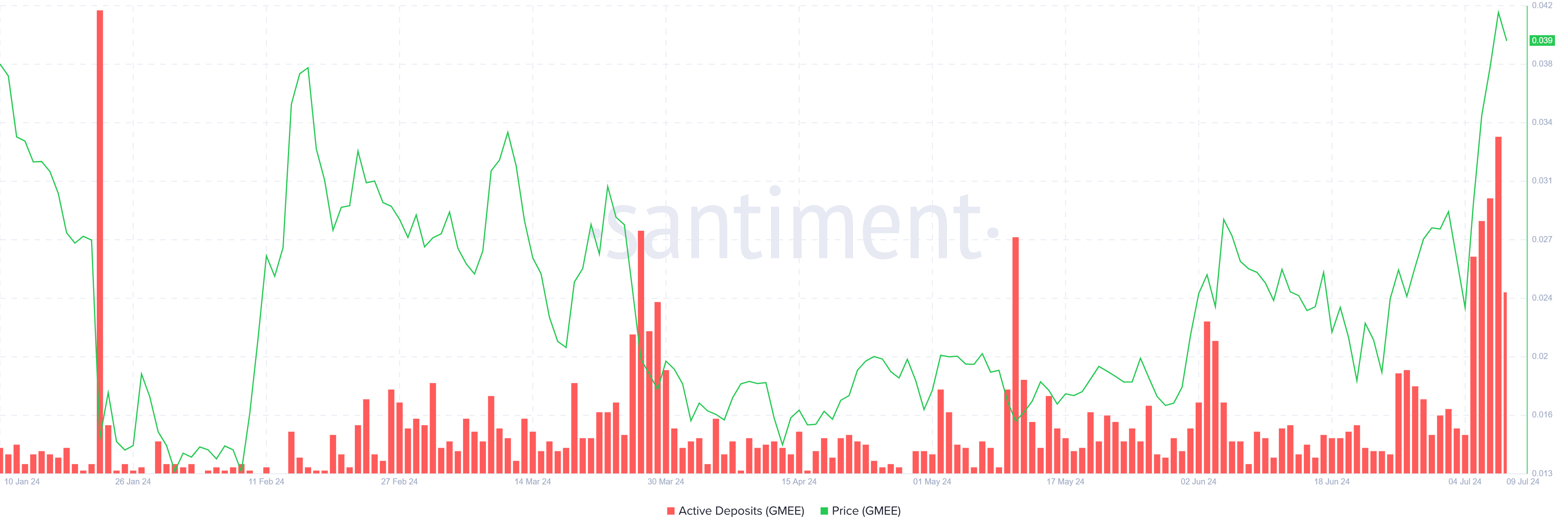 تاريخيًا، يمكن أن يشير ارتفاع في الودائع النشطة إلى زيادة نشاط المستثمرين واستعدادهم لتصفية الأصول. بالنسبة لـ GAMEE، يشير هذا الارتفاع في الودائع النشطة إلى أن المستثمرين يتخذون مواقع نشطة للاستفادة من الزيادة الأخيرة في الأسعار، متوقعين جني الأرباح المحتمل.