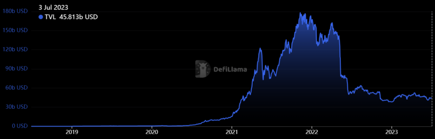 ومع ذلك بمجرد دخول المستخدمين إلى النظام البيئي المتنامي، فإنهم غالبًا ما يبقون داخل السوق. حيث يُعد عام 2023 أطول فترة استقرار نسبي لشركة التمويل اللامركزي DeFi في تاريخ القطاع. وحاليًا تبلغ قيمة القيمة المقفلة للسوق نحو 45.813 مليار دولار، بعد أن ظلت ثابتة طوال العام، وفقًا لما ذكرته منصة DeFiLlama.