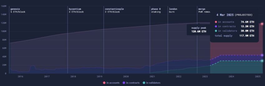 وطبقاً لهذه المعدلات، فعلى الأرجح أن يصل عرض الإيثيريوم إلى 118.1 مليون بحلول عام 2025.