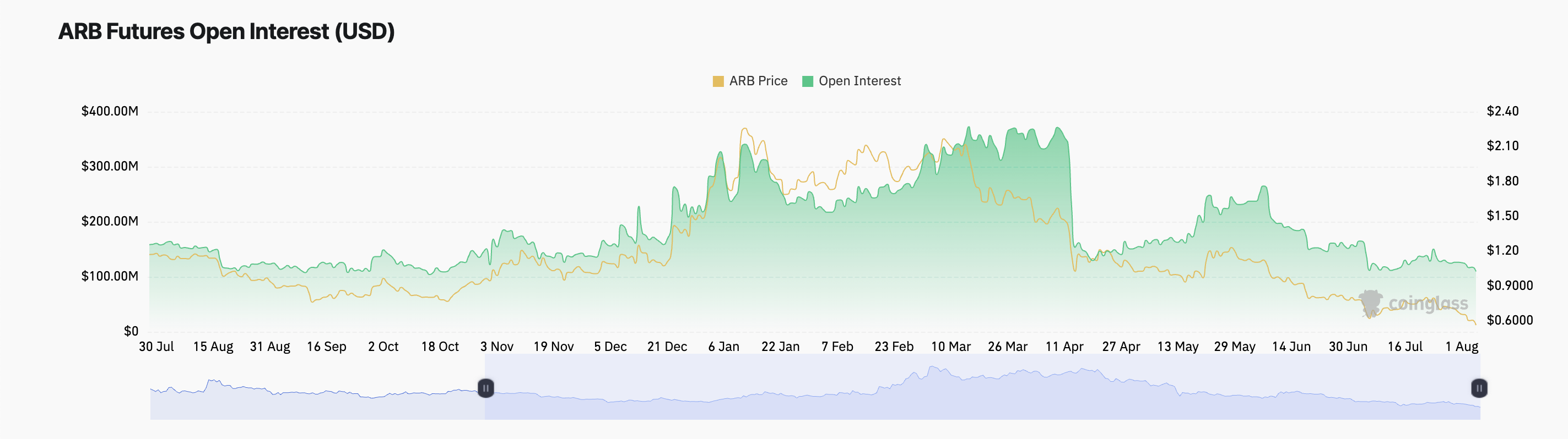 الفائدة المفتوحة لعقود أربيتروم الآجلة. المصدر: Coinglass