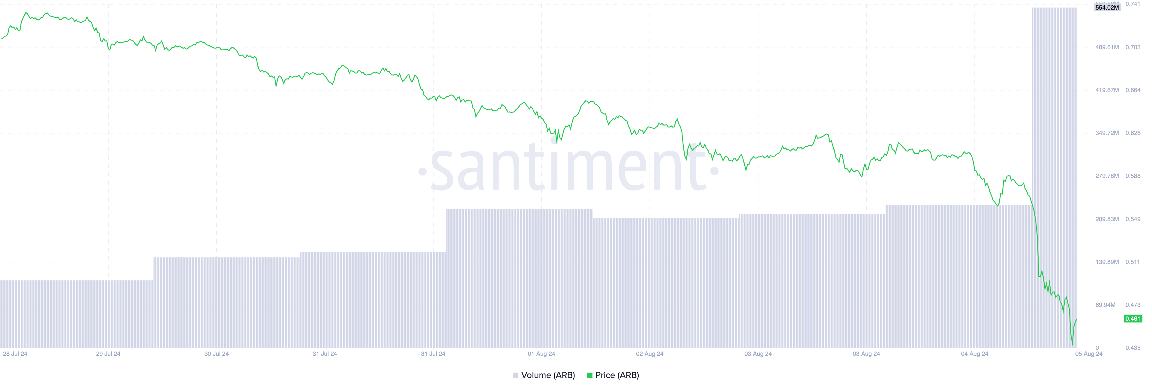 سعر أربيتروم وحجم التداول. المصدر: Santiment