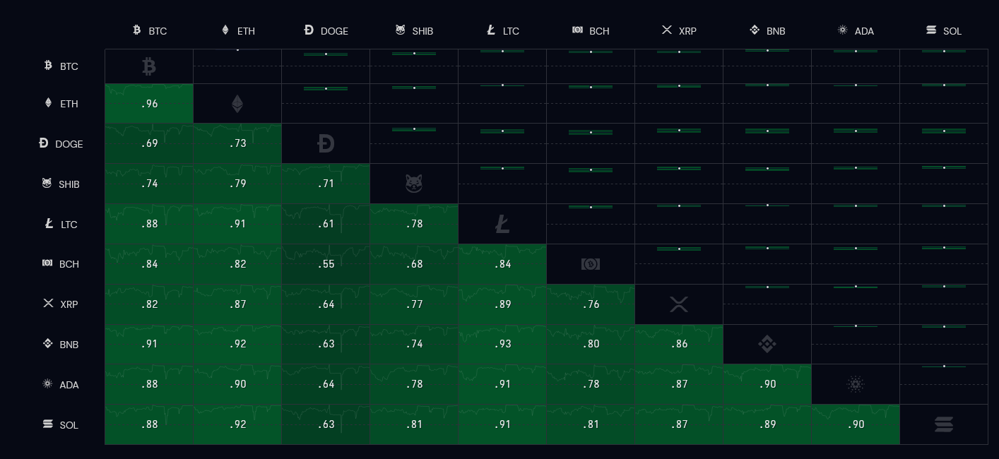 على عكس الأشهر الماضية، فإن تحركات سعر عملة إيثريوم في الأسبوعين الماضيين صارت أكثر ارتباطا بسعر عملة بيتكوين BTC. حيث بلغت 0.96 وهي الأكبر بين كل العملات المشفرة الرئيسية. حسب بيانات منصة cryptowat.