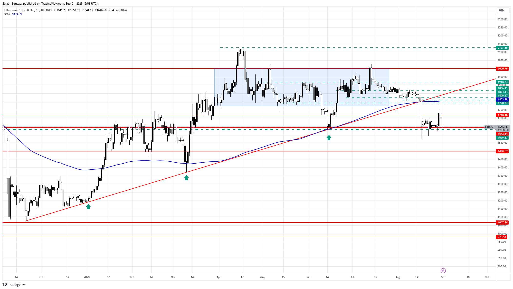 Sponsoredيتداول سعر إيثريوم ETH الآن في وقت الكتابة عند 1645 دولار. تماما فوق منطقة الدعم القوية المحصورة بين المستويين 1630 – 1640 دولار.