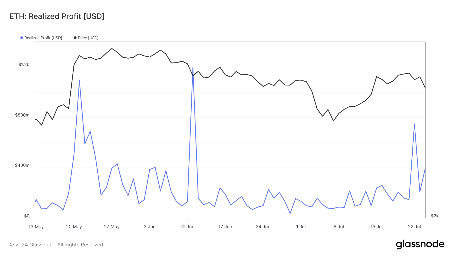 من المثير للاهتمام، أن أخذ الأرباح بقيمة 747 مليون$ حدث بالضبط في اليوم السابق لإطلاق صناديق الإيثريوم ETF. هذا يظهر أنه بينما كان المستثمرون التجزئة يفتقرون إلى رؤية ما سيحدث بعد ذلك، فقد اختاروا تأمين مكاسبهم.