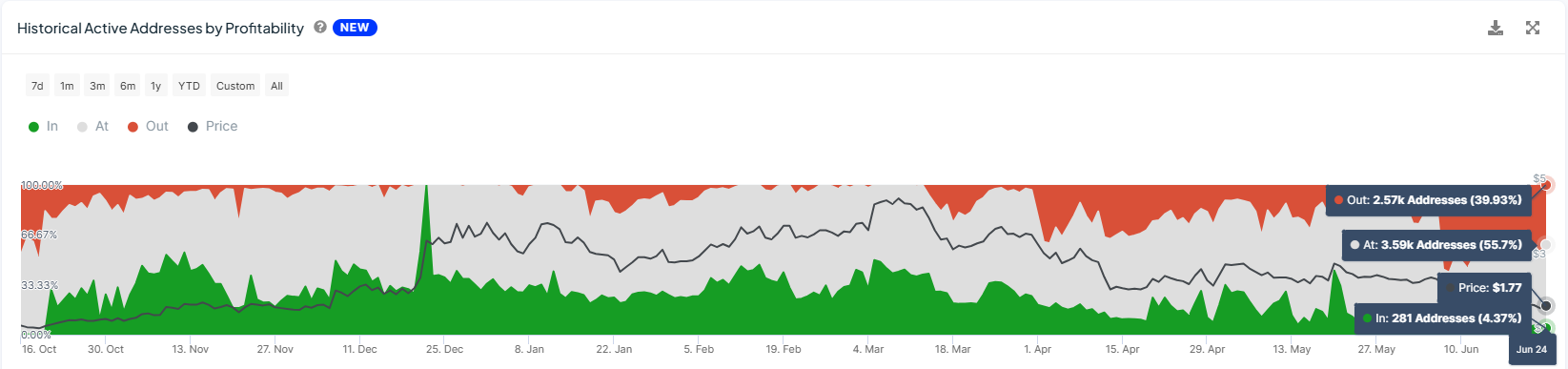 بالإضافة إلى ذلك، يمتنع المستثمرون عن بيع حيازاتهم. عند مراقبة العناوين النشطة حسب الربحية، أقل من 5% من المستثمرين المشاركين في الربح.