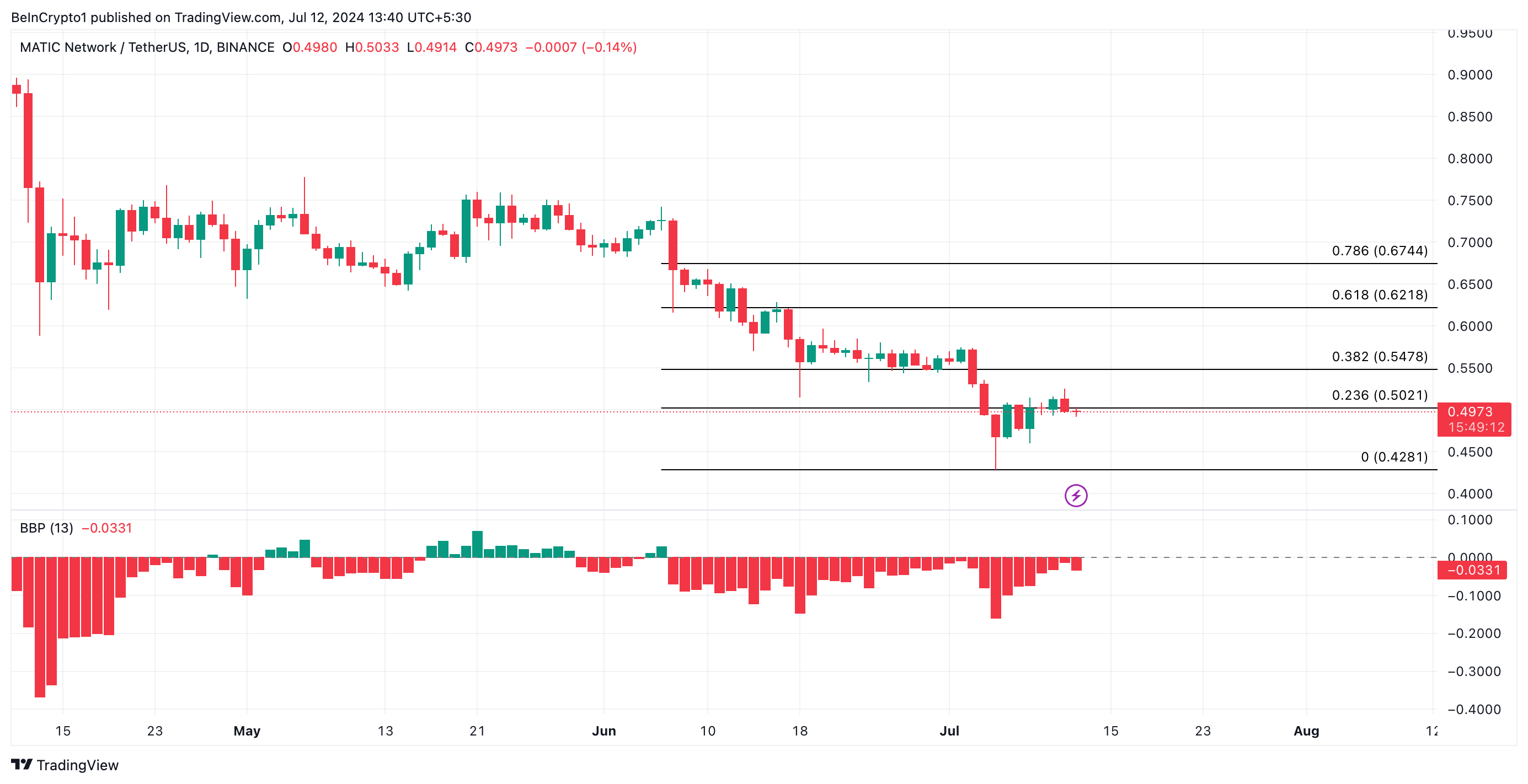 ومع ذلك، فشل سعر عملة MATIC في الاستجابة. في وقت النشر، كان يتداول عندسعر 0,49 دولار. في الواقع، خلال الـ 24 ساعة الماضية، انخفض 4%، بينما ارتفع حجم التداول بأكثر من 10%.