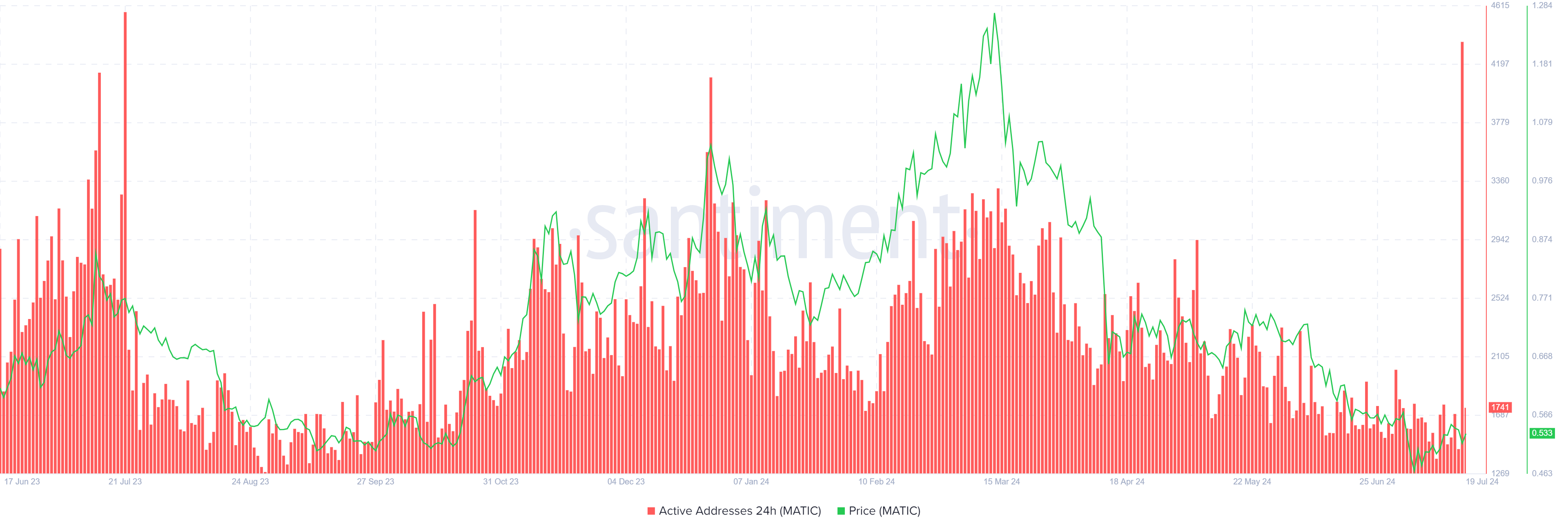 المشاركة، على الرغم من الانخفاض المستمر، قد تأججت هذا الأسبوع مع خبر تحول رمز MATIC إلى POL الذي حصل على جدول زمني. من المتوقع أن يحدث التحول بحلول سبتمبر، مما جذب انتباه المستثمرين.