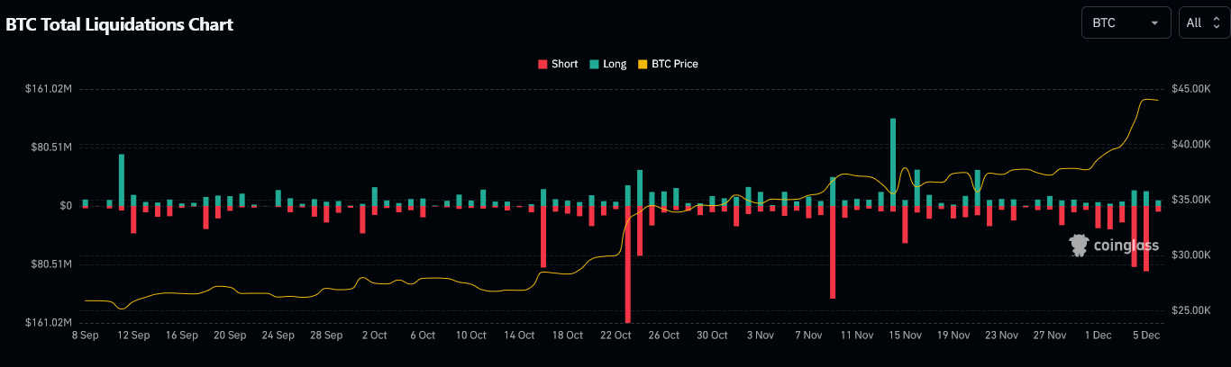 وقد حدث هذه الخسائر عبد الارتفاع القوي جدا في سعر البيتكوين منذ بداية هذا الأسبوع، حيث صعد من مستوى 38,000 دولار إلى 44,500 دولار، في غضون 5 أيم فقط.