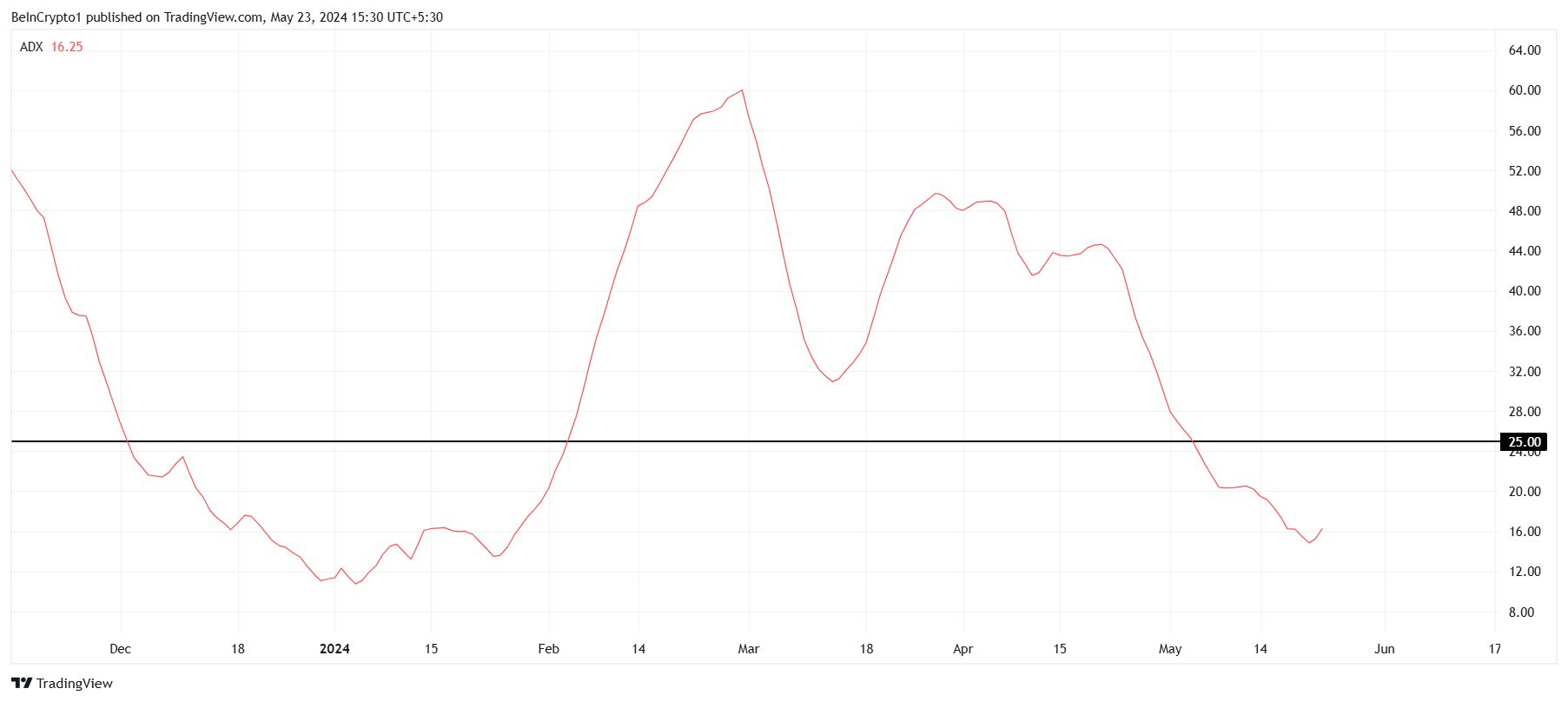 Sponsoredفي حالة TRX، فإن مؤشر ADX أقل بكثير من عتبة 25.0، مما يشير إلى اتجاه هبوطي ضعيف. قد لا يتعزز هذا إذا ارتد سعر ترون من الدعم عند 0.115 دولار.