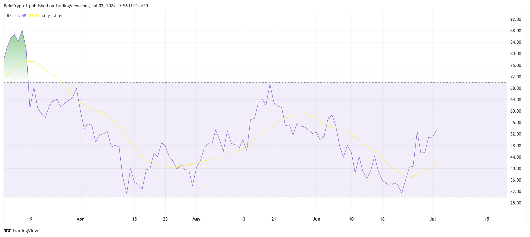 يستفيد سعر سولانا من الإشارات الإيجابية العامة في السوق، وهو ما يتضح في مؤشر القوة النسبية (RSI). لقد دخل RSI المنطقة فوق الخط المحايد لأول مرة خلال شهر، مما يشير إلى تحول كبير في معنويات السوق.