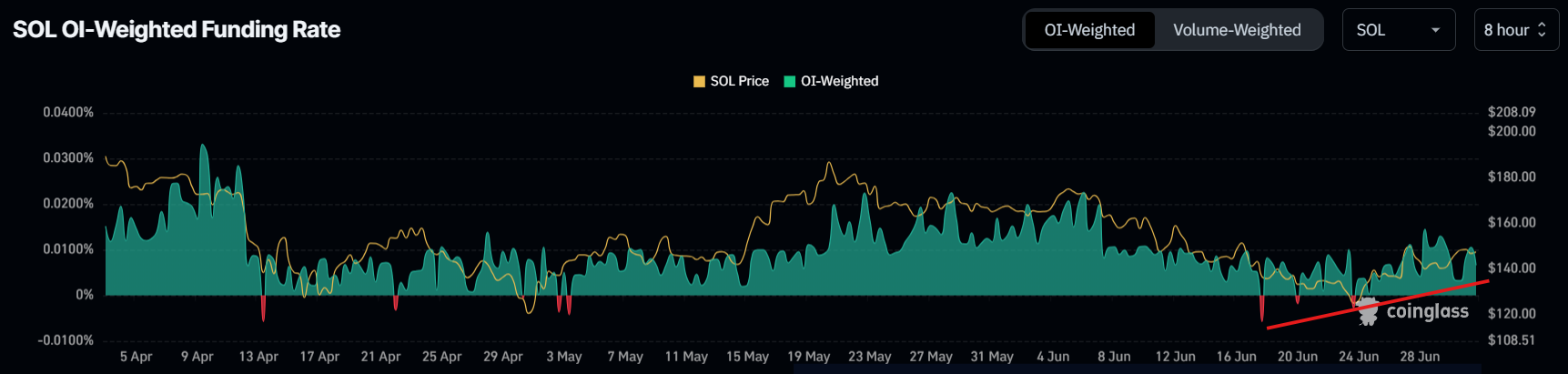 يمكن ملاحظة ذلك في معدل تمويل سولانا، الذي عاد إلى الإيجابية بعد أن انخفض إلى المنطقة السلبية. يشير معدل التمويل الإيجابي إلى أن المتداولين على استعداد لدفع علاوة للحفاظ على مراكزهم الطويلة، مما يعني أن العقود الطويلة تهيمن على السوق.